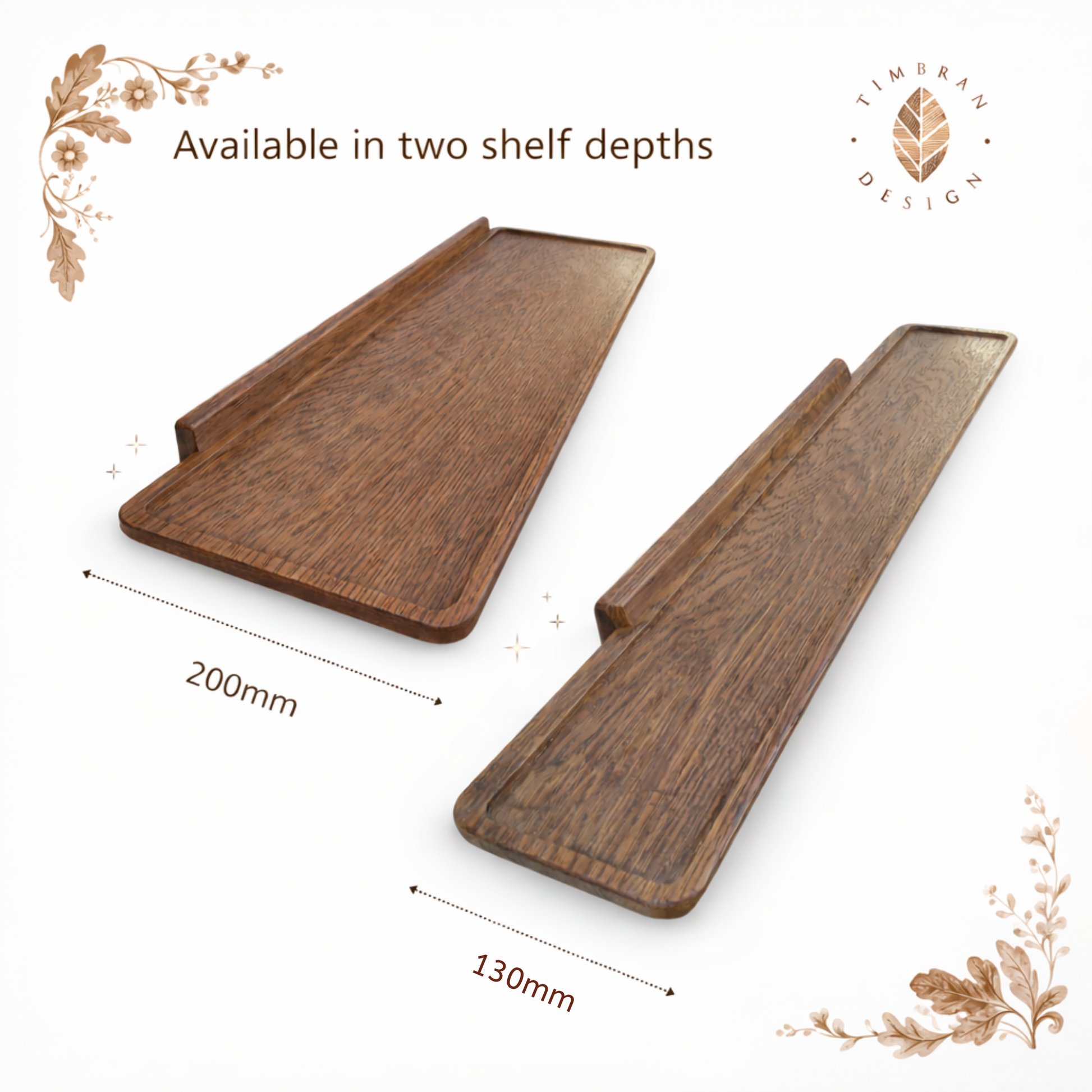The main featured photo shows the 130mm x 750mm length for reference. Whether styled alone or combined with multiple shelves, this elegant walnut-finished oak shelf adds warmth, texture, and functionality to any interior.